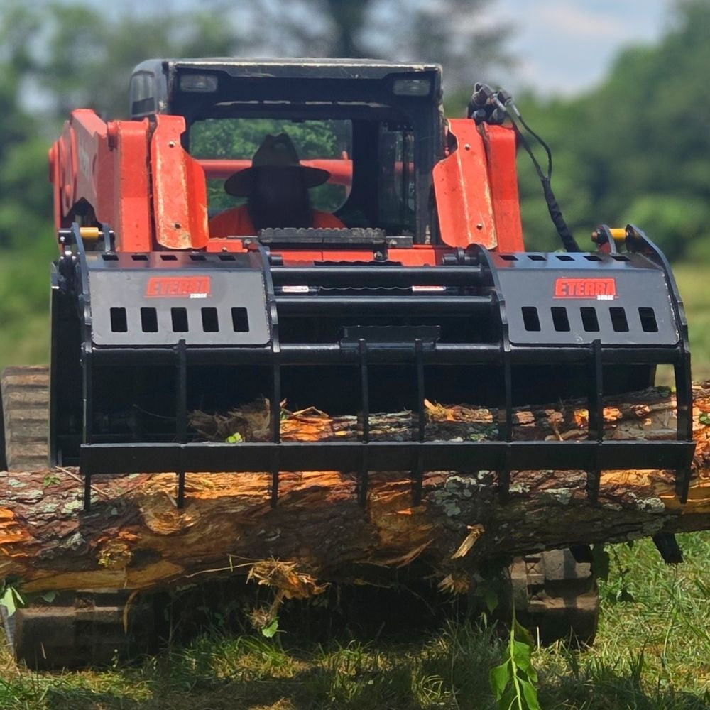 The Eterra Skid Steer Surge Grapple Rake is engineered for tough land clearing jobs, giving you maximum clamping force, durability, and efficiency. Its robust design allows operators to handle heavy debris safely and quickly.