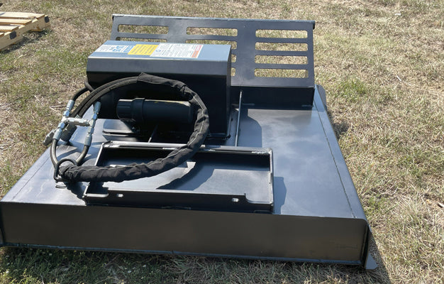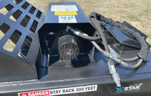 The Star Industries Mini Skid-Steer Brush Cutter is designed to clear overgrowth in places where larger machines can’t maneuver. With a 44-inch cutting width and three bi-directional blades driven by a Parker high-torque motor and Omni gearbox, it powers through dense shrubbery and small tree regrowth with ease. The 5/8" AR400 blades deliver strong, reliable cutting performance in challenging terrain.