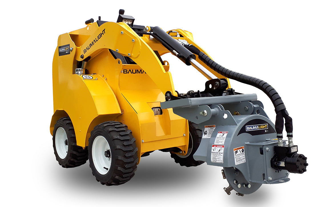 The Baumalight S14 Mini Skid Steer Stump Grinder is built for operators who need reliable stump grinding performance in confined spaces. Designed specifically for mini skid steers and compact tool carriers, the S14 delivers excellent cutting power on low hydraulic flow while maintaining simple, rugged operation with no electrical connections required.